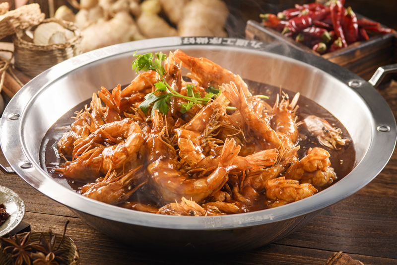 邵匯大蝦擁有強大的后勤保障部門,核心底料由公司中央工廠集中配送,食材精選進口大蝦,搭配秘制底料制作而成,研發出一鍋兩吃的飲食模式(先吃蝦后涮菜,葷素搭配隨心選),打造出綠色健康的飲食新文化。